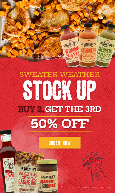 At Sugar Bob’s, we believe Vermont maple syrup can do more than just add sweetness. Rob “Sugar Bob” Hausslein has spent decades in the Vermont woods experimenting with flavors, and asking the question: what else could maple syrup do? That curiosity led to our signature Smoked Maple Syrup, crafted the same way we began using real hardwood smoke, clean ingredients, and the traditions of Vermont sugarmakers.Our commitment to quality runs deep. We work alongside the same crew of friends and neighbors who helped fire the first boils decades ago. The result is pure Vermont syrup with a bold smoky character that has become a favorite in kitchens, restaurants, and bars alike. From smoked maple old fashioneds to award winning barbecue sauce recipes, Sugar Bob’s brings maple into places you never imagined. But we did not stop at syrup. Today you will find maple sriracha hot sauce, smoked barbecue blends, and pantry staples designed for adventurous cooks and food lovers. Whether you are looking to buy pure Vermont maple syrup, stock up on bulk smoked syrup, or discover new recipes using maple syrup, Sugar Bob’s is your destination. Explore our collection and taste why our Vermont maple syrup is unlike any other. From the sugarhouse to your table, we are here to help you cook, grill, and sip with flavor that is authentically Vermont and truly finest kind.