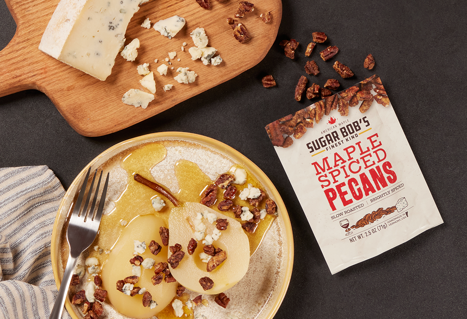 Sugar Bob’s Maple Spiced Pecans are a perfect blend of smoky, sweet, and aromatic flavors that showcase the versatility of Vermont maple syrup. Each premium pecan is coated with Smoked Maple Syrup, pure maple sugar, and a carefully selected mix of six spices, then slow-roasted to create a snack that is both rich and distinctive. The combination of sweet maple and warming spices delivers a flavor that is sophisticated, bold, and unforgettable. These pecans are versatile and can be enjoyed straight from the bag as a satisfying snack or incorporated into recipes that benefit from a maple-spiced crunch. They are also ideal for pairing with cheeses, especially well-aged blues, or served alongside full-bodied red wines, making them a favorite for entertaining or gifting. The smoky maple flavor enhances the natural richness of the pecans, creating a snack experience that is both comforting and adventurous. Every batch reflects Sugar Bob’s commitment to Vermont sugaring traditions and small-batch craftsmanship. The slow-roasting process ensures that each pecan retains its natural texture while absorbing the sweet, smoky, and spiced flavors of the maple coating. Whether you are looking for a gourmet snack, a unique gift, or a flavorful addition to your pantry, Maple Spiced Pecans deliver a memorable taste of Vermont. Experience how Sugar Bob’s transforms simple ingredients into an extraordinary snack with bold flavor, careful craftsmanship, and the unmistakable touch of smoked maple syrup.